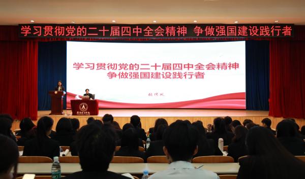 本网讯(党委办公室 黄薇嘉 耿小腾 赵煜 李卓 )2025年11月14日下午,燕京理工学院2025年秋季入党积极分子(高级)培训班专题党课第七讲在报告厅如期举行,本次党课以“学习贯彻党的二十届四中全会精神 争做强国建设践行者”为主题,由学校党委组织部部长张传凤主讲,全体2025年秋季入党积极分子(高级)培训班学员到场参训。